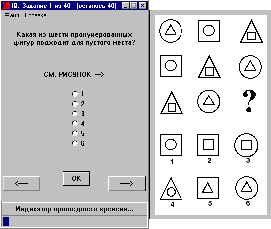 Одна из вариаций теста интеллекта. Тест состоит из сорока заданий, которые нужно пройти за отведенное для этого время. В основном все задания основаны на поиске закономерностей среди фигур или чисел, а также на знании русского языка.