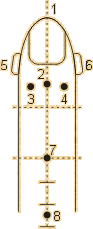 Игла 2 - на середине осевой линии ногтевой фаланги.