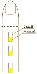 Установите один магнит на середину средней фаланги при помощи лейкопластыря. Если через 5 - 10 минут состояние не ухудшилось (может возникнуть тошнота или головокружение), оставьте их на 2 часа. Процедуру повторяйте 10 дней. На рисунке изображено несколько магнитов, такой вариант лечения можно применять для усиления эффекта.